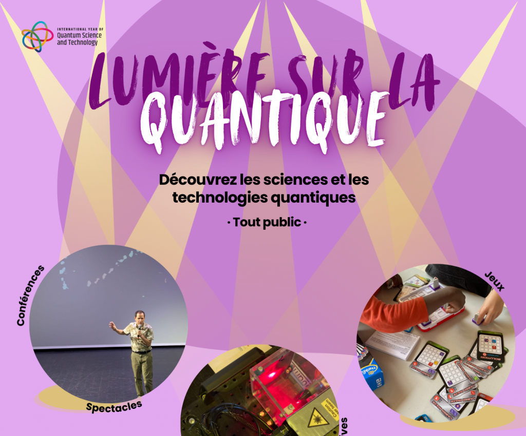 Le DIM QuanTiP, PCQT, Quantum Saclay, la SFP et le QICS organisent conjointement, le 21 janvier 2026, une journée de médiation entièrement dédiée aux sciences et technologies quantiques au centre LUMEN, au cœur de l’Université Paris-Saclay ! Toute la journée, nous vous proposons d’assister à des conférences et de participer à des ateliers et jeux de société sur la quantique. Cet événement inédit regroupe des scientifiques de différents laboratoires de physique d’Île de France et accueille Julien Bobroff, chercheur et vulgarisateur renommé, pour une médiation d’une heure.